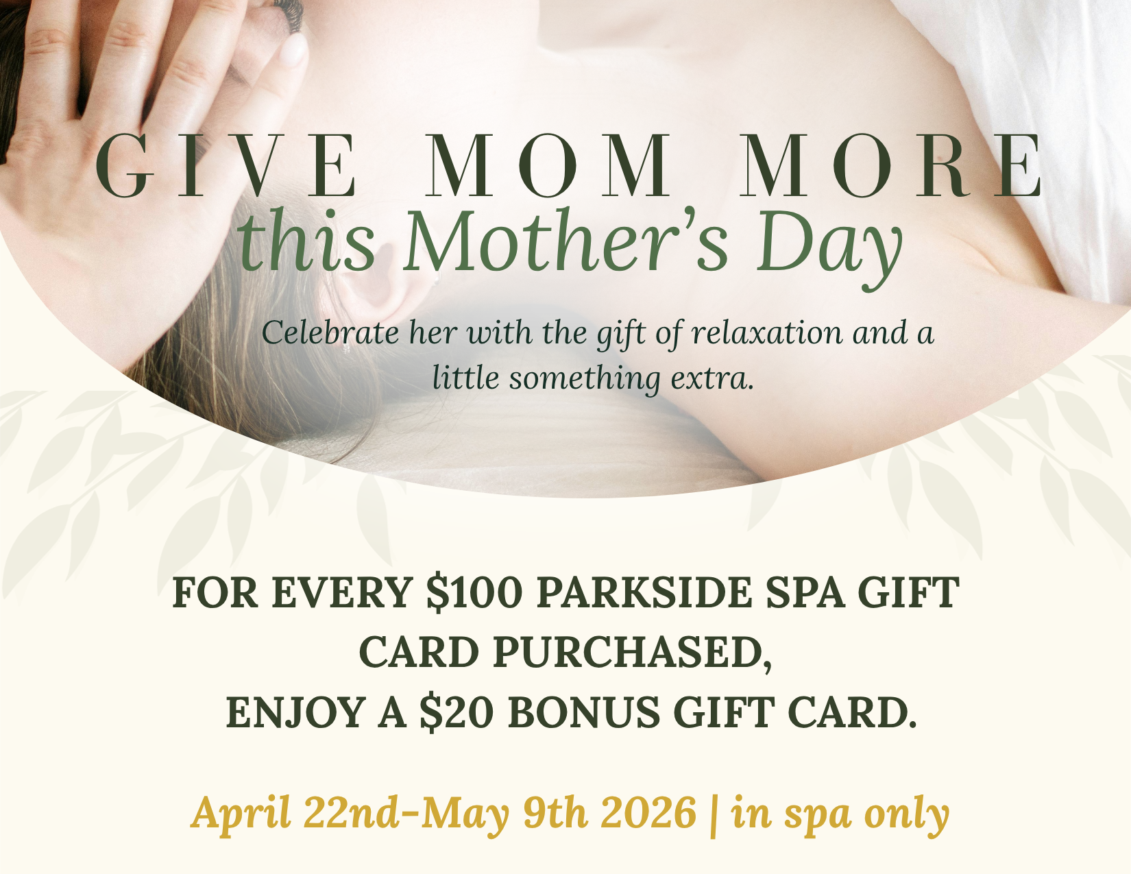Make Mom’s Mother’s Day Special! CURRENT PROMOTIONS →