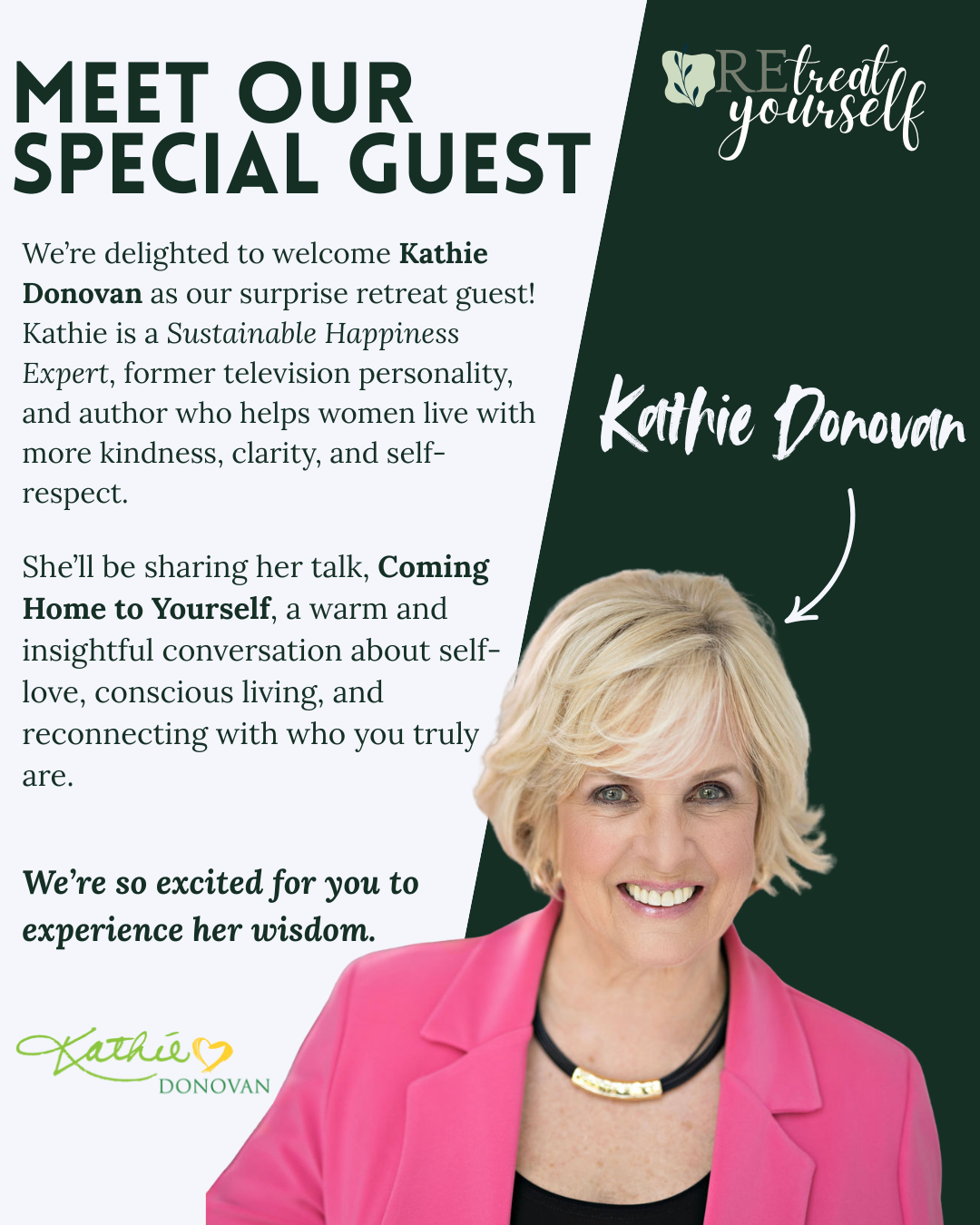 We’ll be joined by Kathie Donovan — Sustainable Happiness Expert, beloved former television personality, and author of two transformative books that inspire women to live with more kindness, clarity, and self-respect.